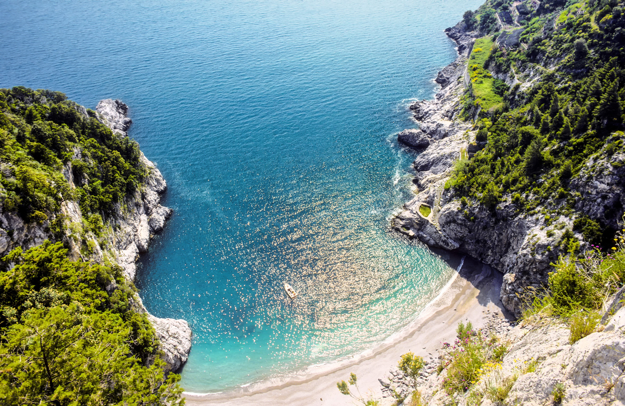 Total relaxation in the fresh and crystal-clear waters of the Amalfi Coast. Visit the most secluded coves and the most exclusive beaches, take a trip to Capri, Li Galli, Positano…or at sunset…